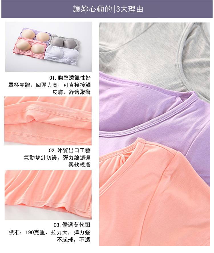11分鐘前【廠家直銷 買一送一】夏季爆款莫代爾帶胸墊可外穿家居短袖,一體式無鋼圈設計,方便舒適,告別鋼圈束縛,柔軟莫代爾面料,不舒服包退!限時售價!買到賺到 - 【買一送三】任選4件 均價299