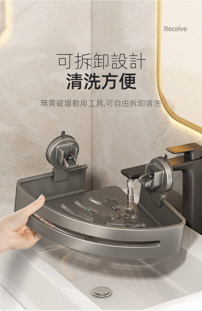 15分鐘前自帶吸盤,可隨時移動重復使用的置物架 免打孔廚房浴室衛生間三角置物架多用途壁掛收納架毛巾架 - 【超夯下殺】買一送二,共三入組 NT$999
